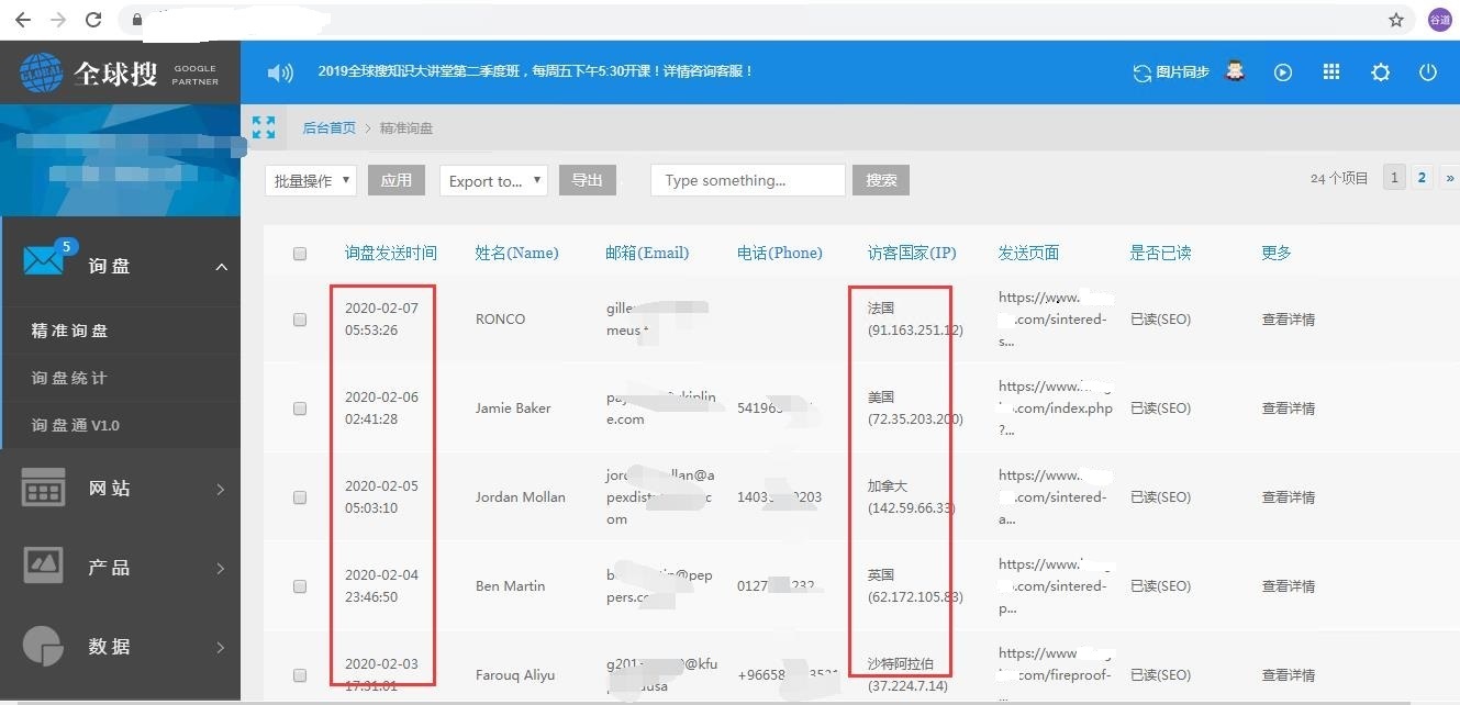 我們再來看看自疫情爆發(fā)以來,全球搜部分客戶在谷歌上推廣獨立官網(wǎng)的效果,所獲詢盤訂單量并未見明顯下降: