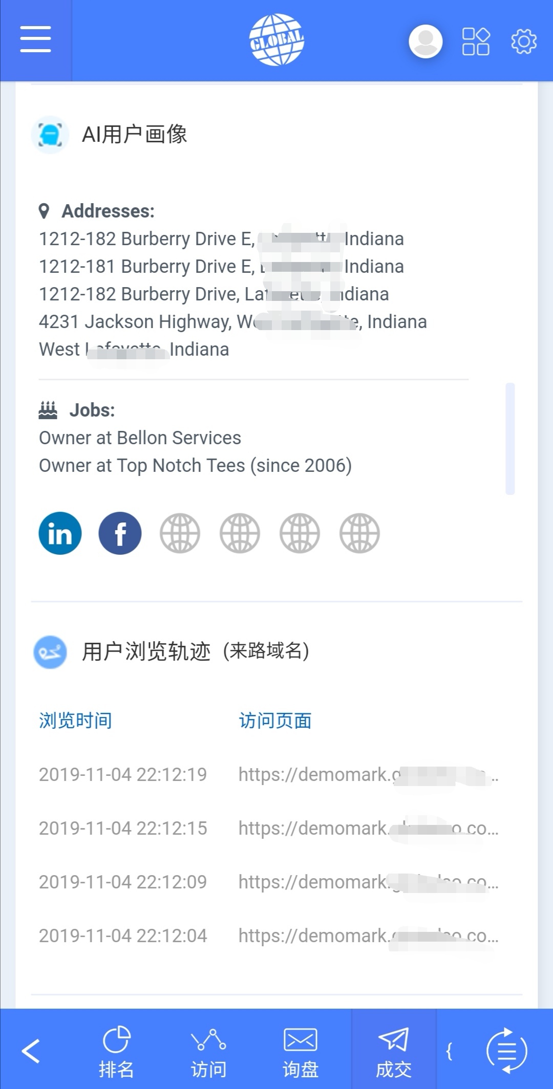 AI成交分析師就是通過客戶的網(wǎng)站訪問痕跡,客戶的AI用戶畫像,詢盤信息以及所有的互動信息,自動為客戶做成交概率評分。在一定程度上解決了不能判斷客戶真實(shí)度,重要性的難題。