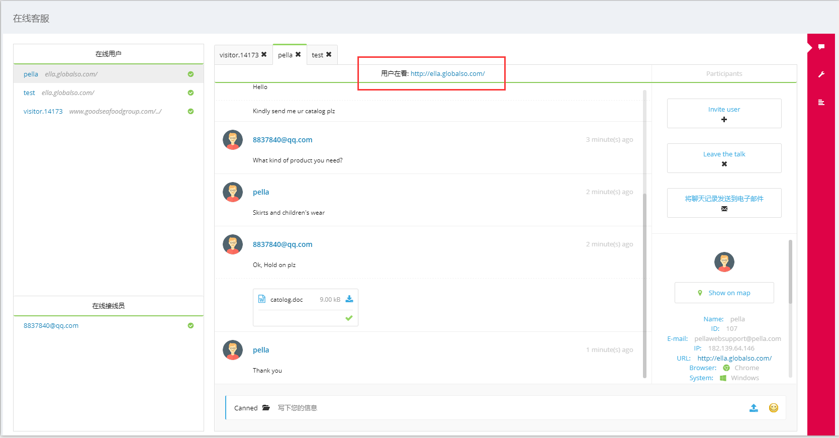 此外,數(shù)據(jù)大師還帶有在線聊天功能,能夠?qū)崟r追蹤客戶正在看的網(wǎng)站,有針對性的做產(chǎn)品服務(wù);聊天結(jié)束后,你還可以將你們的聊天記錄發(fā)送至你的郵箱,避免內(nèi)容遺忘。