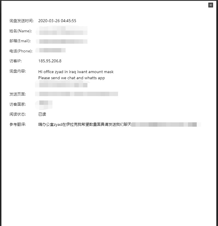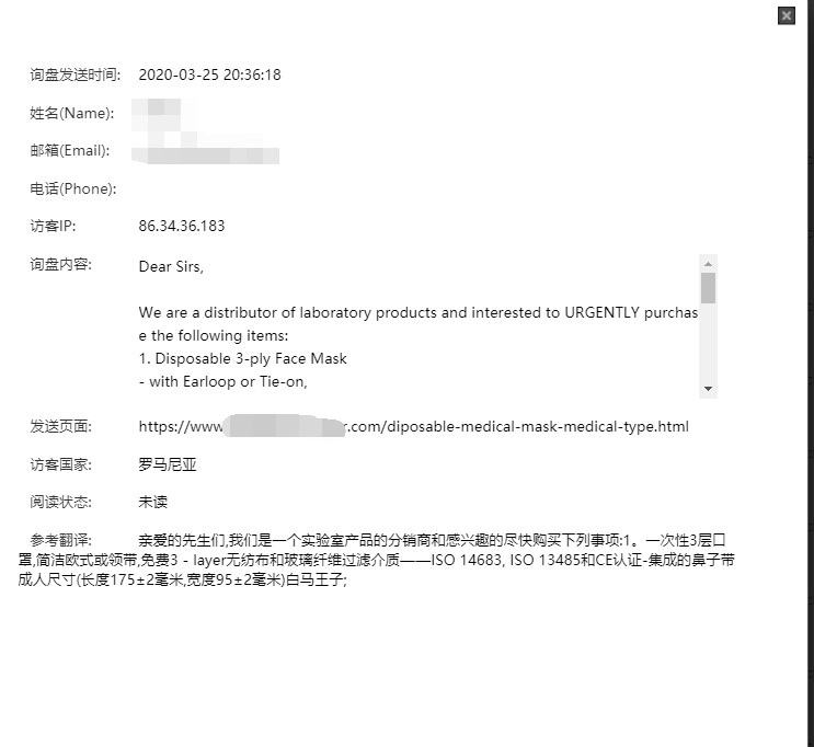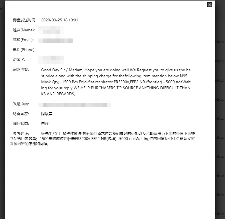 關(guān)于效果,我們可以明顯發(fā)現(xiàn),口罩等防疫用品上線推廣僅僅幾天時間,就開始陸續(xù)有詢盤進(jìn)來!