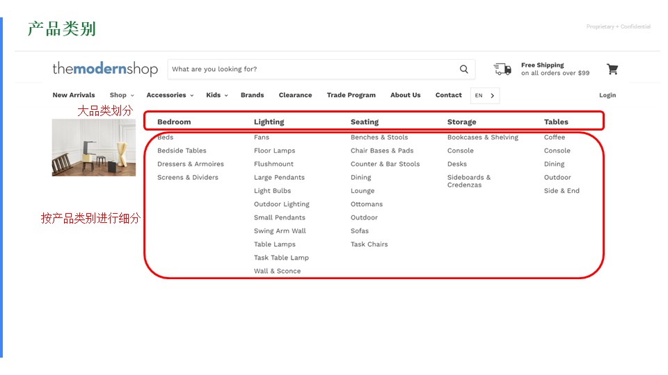 按產(chǎn)品場景進行大品類劃分,再按產(chǎn)品類別進行細分。