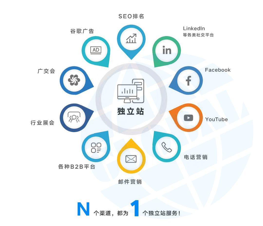所有的“N”都為”1″個(gè)獨(dú)立站服務(wù),何愁沒有流量來源!而且這些平臺上來的流量會在官網(wǎng)上進(jìn)行一個(gè)落地,官網(wǎng)建設(shè)的基調(diào)、風(fēng)格、內(nèi)容,無形中也會篩選客戶,比如說,我們企業(yè)官網(wǎng)走的是高檔定制的產(chǎn)品路線,那么對于追求低價(jià)格,質(zhì)量要求不高的客戶,就會出現(xiàn)客戶需求無法匹配的狀況,提前篩選也失一件好事。