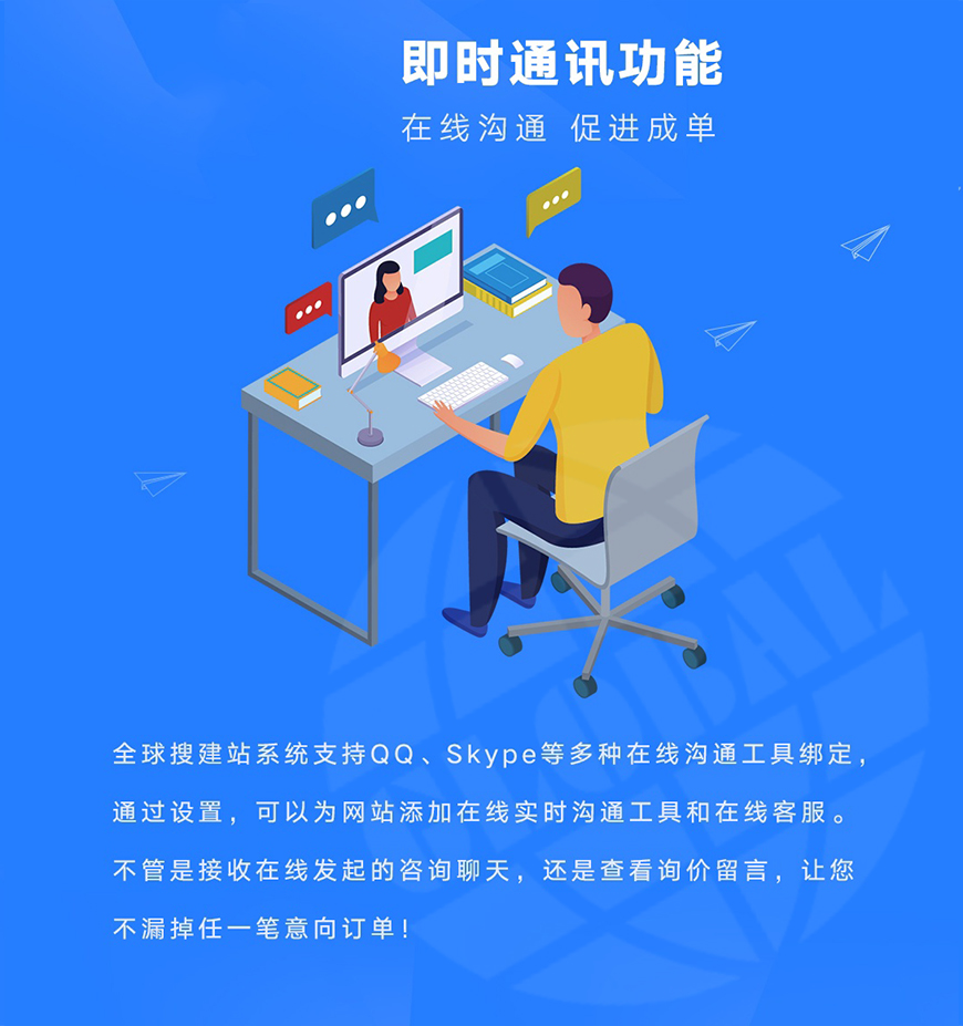 傳統(tǒng)的獨(dú)立站,需要客戶發(fā)送詢盤,然后業(yè)務(wù)員再通過郵件的方式與客戶取得聯(lián)系,這樣的一番操作下來,客戶又會去撩撥別的廠商了,而在線聊天可實(shí)時(shí)追蹤客戶正在看的網(wǎng)站,有針對性的做產(chǎn)品服務(wù);聊天結(jié)束后,你還可以將你們的聊天記錄發(fā)送至你的郵箱,避免內(nèi)容遺忘。