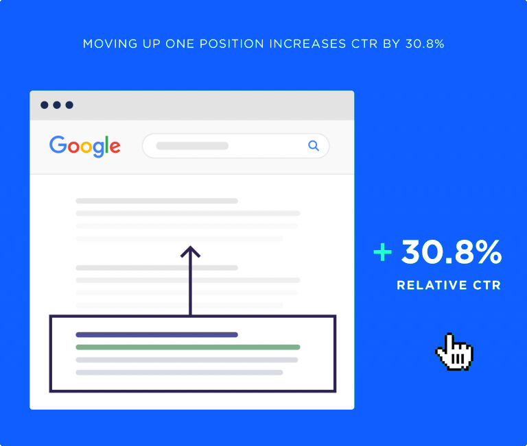 在所有條件都相同的情況下,在Google中排名上升一個位置可使相對點擊率提高30.8%。