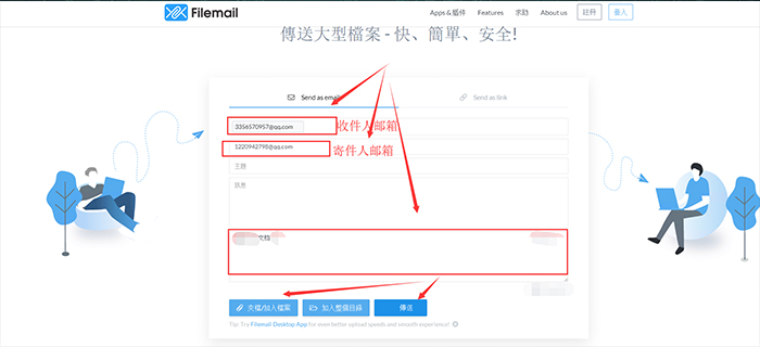 有些外貿(mào)行業(yè)有時(shí)需要給客戶傳視頻之類的幾十個(gè)G的大文檔,如果選擇寄CD給老外的話,運(yùn)費(fèi)會(huì)非常昂貴,讓老外下載百度云盤類的工具一般也不妥當(dāng),通過該網(wǎng)站,輸入你的email,客戶email,然后上傳文件后點(diǎn)擊傳送。他郵箱里就出現(xiàn)一個(gè)連接,直接點(diǎn)連接就能下載了。