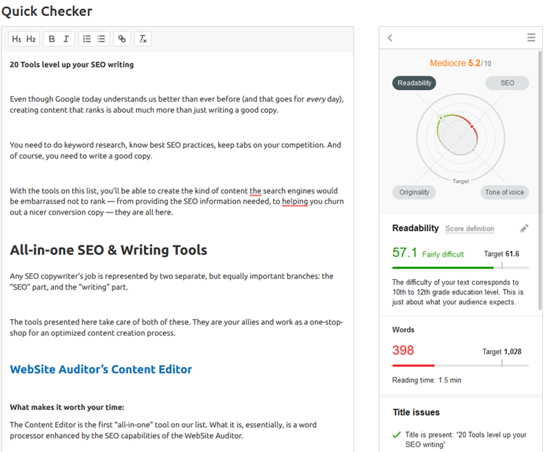 本質上,內(nèi)容編輯器是一種通過WebSite Auditor的SEO功能,來優(yōu)化文字內(nèi)容的工具。